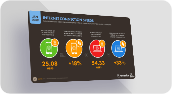 JAN INTERNET CONNECTION SPEEDS 2019 AVERAGE DOWNLOAD SPEEDS FOR MOBILE AND FIXED INTERNET CONNECTIONS, WITH YEAR-ON-YEAR COMPARISON AVERAGE SPEED OF YEAR-ON-YEAR CHANGE IN AVERAGE SPEED OF YEAR-ON-YEAR CHANGE IN MOBILE INTERNET AVERAGE SPEED OF MOBILE FIXED INTERNET AVERAGE SPEED OF FIXED CONNECTIONS INTERNET CONNECTIONS CONNECTIONS INTERNET CONNECTIONS 25.08 +18% 54.33 +33% MBPS MBPS SOURCE: OOKLA SPEEDTEST (DECEMBER 2018 AND DECEMBER 2017). 47