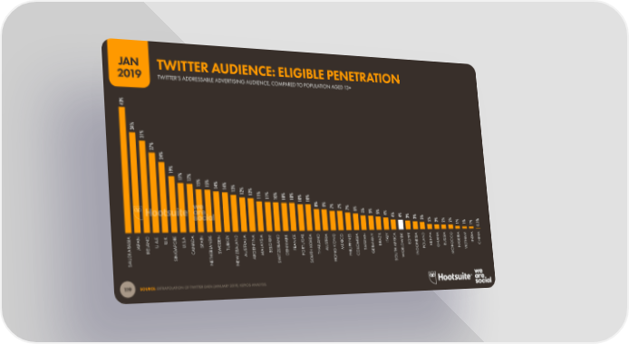 JAN TWITTER AUDIENCE: ELIGIBLE PENETRATION 2019 TWITTER’S ADDRESSABLE ADVERTISING AUDIENCE, COMPARED TO POPULATION AGED 13+ 43% 34% 31% 27% 24% 19% 17%17% 15%15%14%14% 13%12%12% 11%11%10%10%10%10%10% 8% 8%7% 7%7% 6% 5%5%5% 4%4% 4%3%3% 3%2%2% 2%2% 1% 1%1% 0.1% A . . E . A S Y A A A K E L A A S A Y L Y A E T A A A A A A A I N D E K R A N N D I I M D D I G O I N I L P I D I O I M I . . . D I D E E N L N S R C A E E N Z C D Y S N Y R B A N A U S A K I U N R N R N C B A A I I N S C A D N P . O . A N D A Y I A N G T I N A A T E N S E I A A P P R A R T A A S O X I M R I R W G A A C N N H R A L U U E L A G L M A U O L W F L E U I J A N S A U T N L T I E I M B E N H G T E L A L R R K U K PPO A D K R O I C A R A W T S E E E N R A I A R L O E G R E A F M L L O G R I I I C E S Z U G B Z E O H H A G I T E H R D P O N V D N A R M T D P T T H O G T O U I H I N P C N S T W A U O U I M A E E W O O W S N N S S H S 119 SOURCE: EXTRAPOLATION OF TWITTER DATA (JANUARY 2019); KEPIOS ANALYSIS.