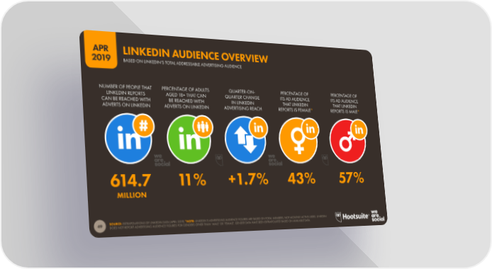 APR LINKEDIN AUDIENCE OVERVIEW 2019 BASED ON LINKEDIN’S TOTAL ADDRESSABLE ADVERTISING AUDIENCE NUMBER OF PEOPLE THAT PERCENTAGE OF ADULTS QUARTER-ON- PERCENTAGE OF PERCENTAGE OF LINKEDIN REPORTS AGED 18+ THAT CAN QUARTER CHANGE ITS AD AUDIENCE ITS AD AUDIENCE CAN BE REACHED WITH BE REACHED WITH IN LINKEDIN THAT LINKEDIN THAT LINKEDIN ADVERTS ON LINKEDIN ADVERTS ON LINKEDIN ADVERTISING REACH REPORTS IS FEMALE* REPORTS IS MALE* 614.7 11% +1.7% 43% 57% MILLION SOURCE: EXTRAPOLATIONS OF LINKEDIN DATA (APRIL 2019).*NOTE: LINKEDIN’S ADVERTISING AUDIENCE FIGURES ARE BASED ON TOTAL MEMBERS, NOT MONTHLY ACTIVE USERS. LINKEDIN 49 DOES NOT REPORT ADVERTISING AUDIENCE FIGURES FOR GENDERS OTHER THAN ‘MALE’ OR ‘FEMALE’. GENDER DATA HAVE BEEN EXTRAPOLATED BASED ON AVAILABLE DATA.