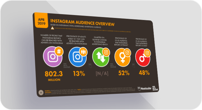 APR INSTAGRAM AUDIENCE OVERVIEW 2019 BASED ON INSTAGRAM’S TOTAL ADDRESSABLE ADVERTISING AUDIENCE ! CHANGES IN DATA PROVIDER METHODOLOGIES MEAN THAT DATA ON THIS SLIDE IS NOT DIRECTLY COMPARABLE TO DATA IN OUR PREVIOUS REPORTS NUMBER OF PEOPLE THAT PERCENTAGE OF ADULTS QUARTER-ON- PERCENTAGE OF PERCENTAGE OF INSTAGRAM REPORTS AGED 13+ THAT CAN QUARTER CHANGE ITS AD AUDIENCE ITS AD AUDIENCE CAN BE REACHED WITH BE REACHED WITH IN INSTAGRAM THAT INSTAGRAM THAT INSTAGRAM ADVERTS ON INSTAGRAM ADVERTS ON INSTAGRAM ADVERTISING REACH REPORTS IS FEMALE* REPORTS IS MALE* 802.3 13% [N/A] 52% 48% MILLION SOURCE: EXTRAPOLATIONS OF FACEBOOK DATA (APRIL 2019). *NOTE: FACEBOOK DOES NOT PUBLISH ADVERTISING AUDIENCE DATA FOR GENDERS OTHER THAN ‘MALE’ AND ‘FEMALE’. ADVISORY: FIGURES REPORTED ON THIS CHART ARE BASED ON INSTAGRAM’S ADDRESSABLE ADVERTISING AUDIENCE, AND MAY NOT MATCH TOTAL MONTHLY ACTIVE USERS. FACEBOOK HAS 35 RECENTLY CHANGED THE WAY IT REPORTS INSTAGRAM ADVERTISING AUDIENCE NUMBERS, SO FIGURES QUOTED HERE WILL NOT BE COMPARABLE TO FIGURES QUOTED IN PREVIOUS REPORTS.